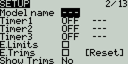 Flight - The timer value is NOT reset when switching models or when the radio is turned off / on. The timer value is only reset when the Reset flight option is selected in the Reset menu.