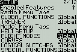 Glob. Funcs - When enabled, global functions programmed in the radio settings will apply to this model. When disabled, global functions will not apply to this model.