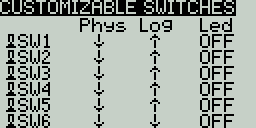 Selecting one of the Axis, Pots, or Switches lines from the list will allow you to add a 3 character label to the control as well as change the type of control as needed. Additionally, you can invert the direction of the Pots by selecting the -> at the end of the line, which will then change to <- .