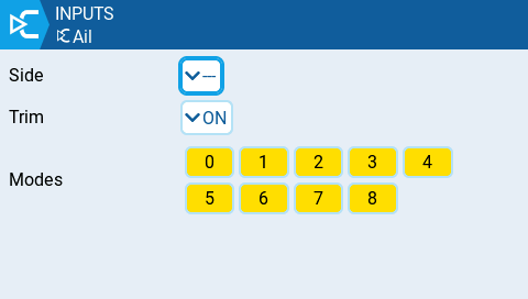 Modes - Specifies which flight modes this input is active for.