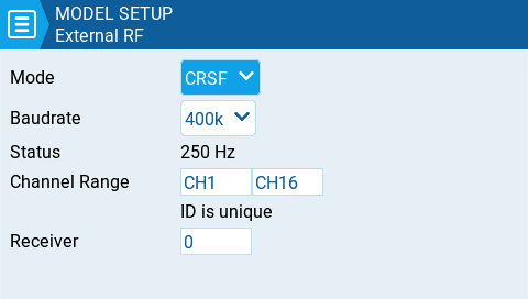 Module - Please refer to FrSky documentation for these configuration settings